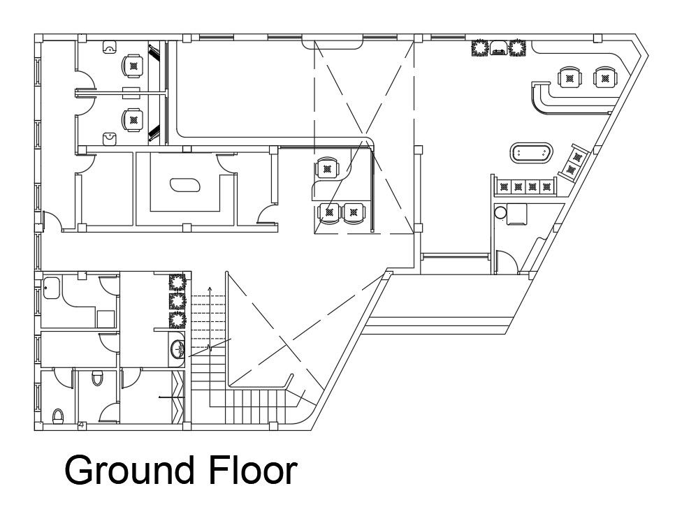 21x14m Ground Floor Bank Furniture Layout DWG File for AutoCAD use