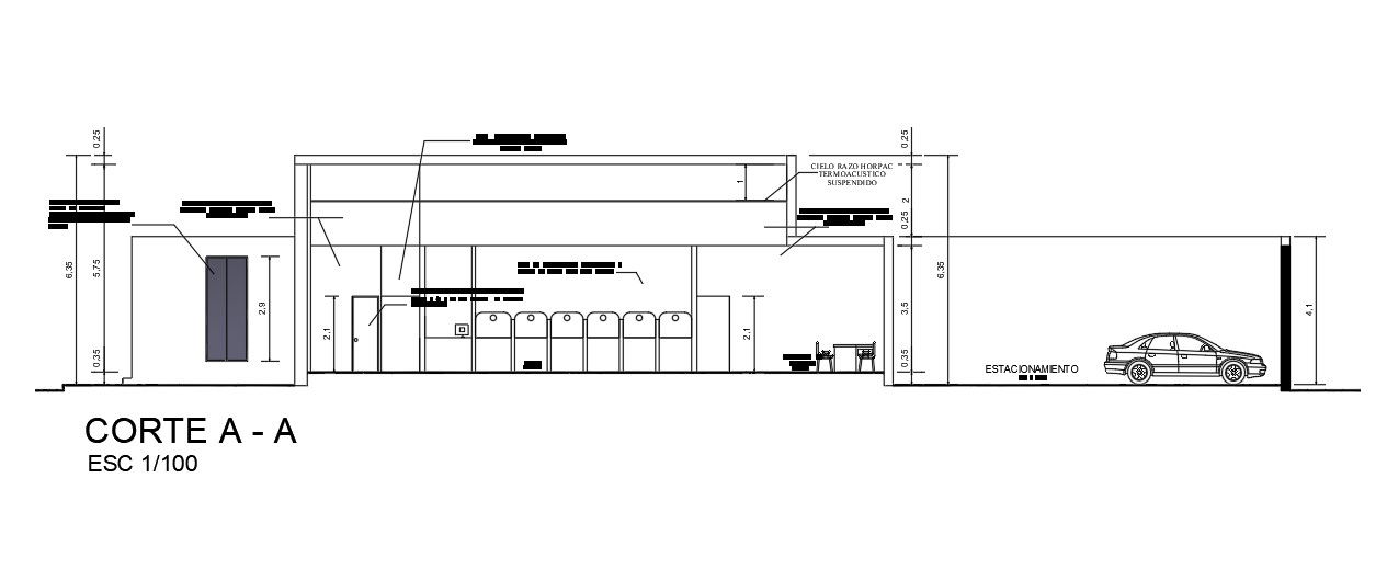 Front section view of 34x20m bank building is given in this Autocaddrawing file. This is single story bank building. In the ground floor, car parking, counter area, reception & help desk, waiting hall, cashier counter, manger cabin, gent’s toilet, ladies toilet, kitchen, conference room, and other details are available. For more details download the AutoCAD drawing file. Thank you for downloading the Autocad drawing file and other CAD program files from our website.