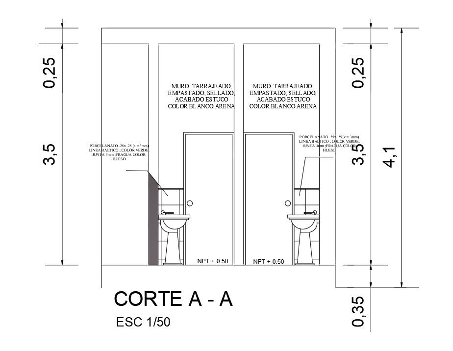 Front section view of 3x3m bathroom building is given in this Autocad drawing file. This is given for 34x20m bank building. Gent’s toilet and ladies toilet is available in this plan. For more details download the AutoCAD drawing file. Thank you for downloading the Autocad drawing file and other CAD program files from our website.