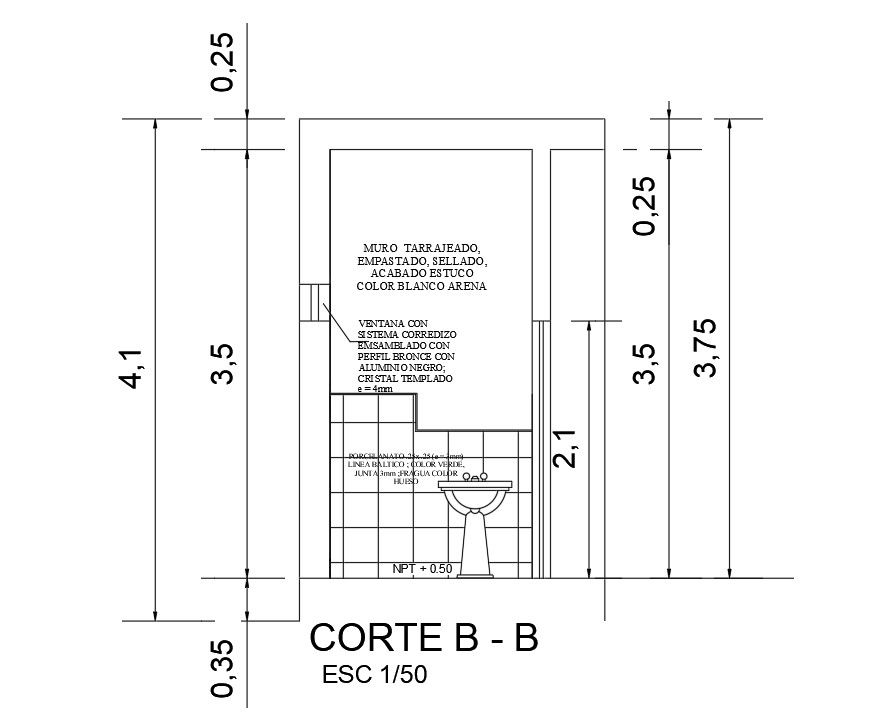 Left side section view of 3x3m bathroom building is given in this Autocad drawing file. This is given for 34x20m bank building. Gent’s toilet and ladies toilet is available in this plan. For more details download the AutoCAD drawing file. Thank you for downloading the Autocad drawing file and other CAD program files from our website.
