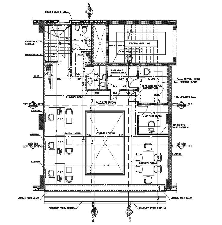 11x14m first floor bank plan is given in this Autocad drawing file.Download the Autocad model.