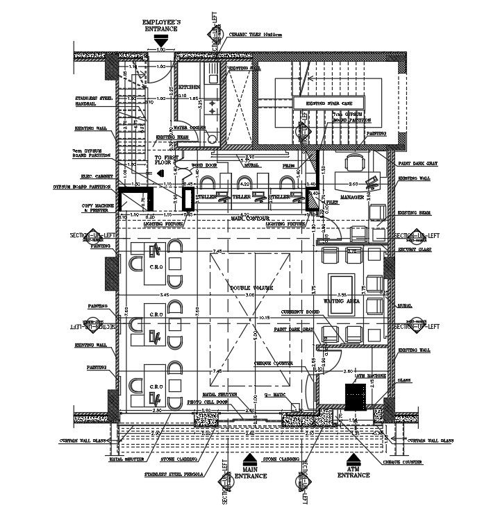 11x14m ground floor bank plan is given in this Autocad drawing file. Download the Autocad model.