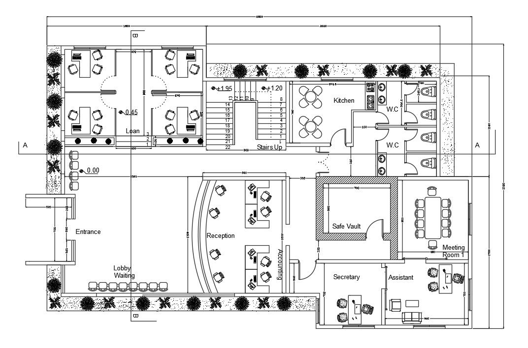 48x32m first floor bank plan is given in this Autocad drawing file. This is G+1 bank building. Secretary room, assistant manager room, load area, waiting lobby, reception, entrance, safe vault, kitchen, meeting room 1, gent’s toilet, ladies toilet, reception & help desk is available. For more details download the Autocad drawing file. Thank you for downloading the Autocad drawing file and other CAD program files from our website.