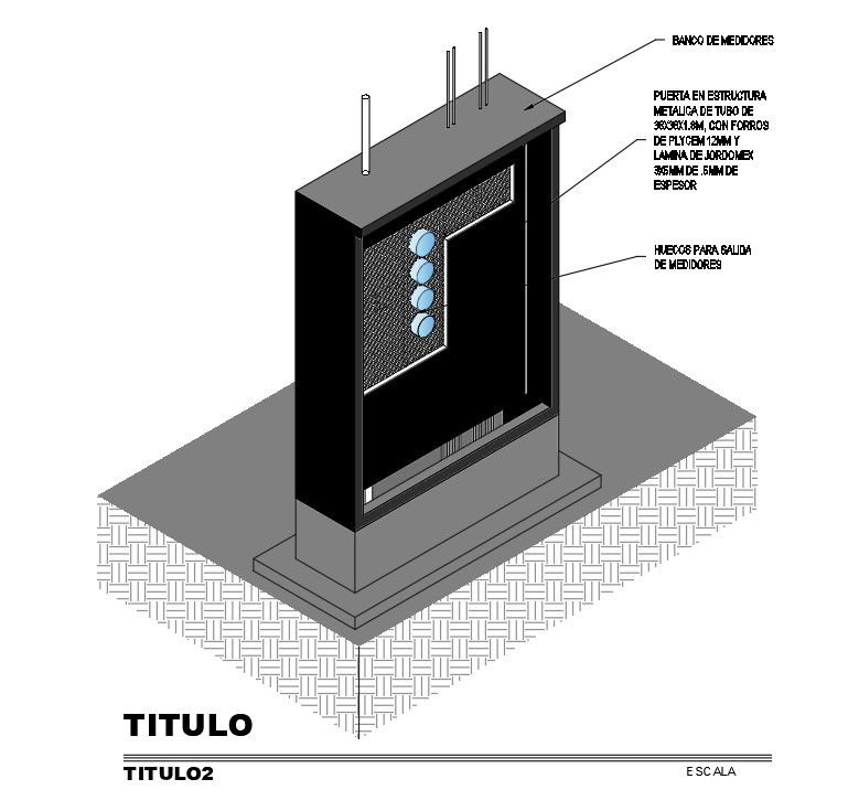 Top view of 2000x500mm meter plan is given in this Autocad drawing file. Measurement details are given in this model. Padlock lock, main switch, meter module, 120x200x400mm concrete block portable wall with burned fluff, TV and telephone box, 38x38x1.8mm tube frame, reinforced concrete side wall # 3 d @ 150mm reinforced and other details are given. For more details download the Autocad drawing file. Thank you for downloading the Autocad drawing file and other CAD program files from our website.