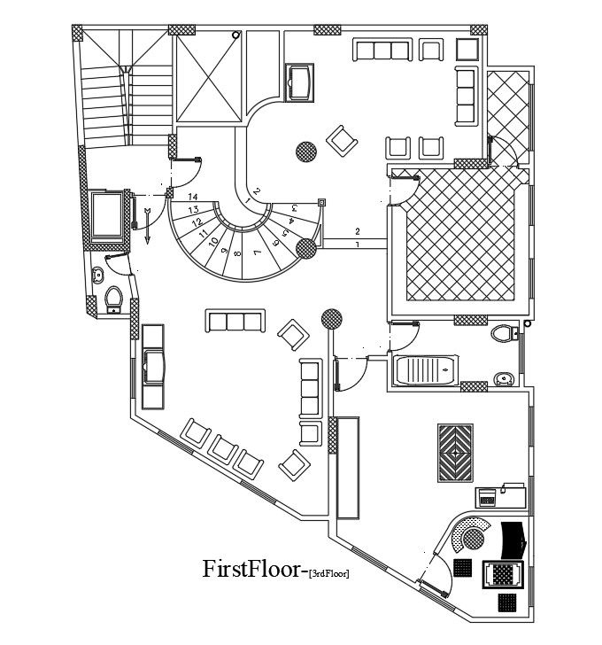 14x18m first floor villa plan is given in this Autocad drawing file. Download the Autocad model.