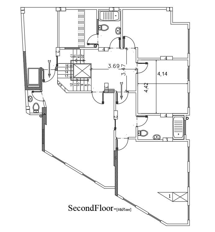 14x18m second floor villa layout is given in this Autocad drawing file. Download now.
