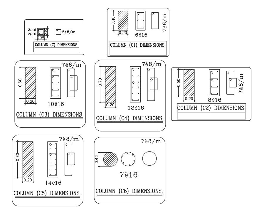 38x40m villa plan of column plans are given in this Autocad drawing file. In this, 7 column drawings are given. Other details are given in this model. For more details download the Autocad drawing file. Thank you for downloading the Autocad drawing file and other CAD program files from our website.