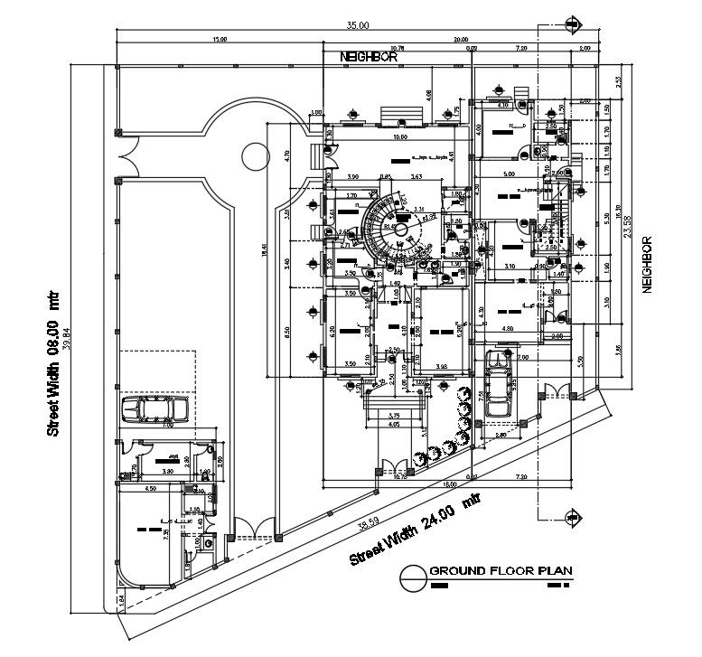 38x40m ground floor villa plan is given in this Autocad drawing file.Download now.