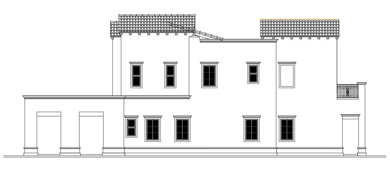 Right side elevation view of 15X28m villa building is given in this Autocad drawing file. Download now.