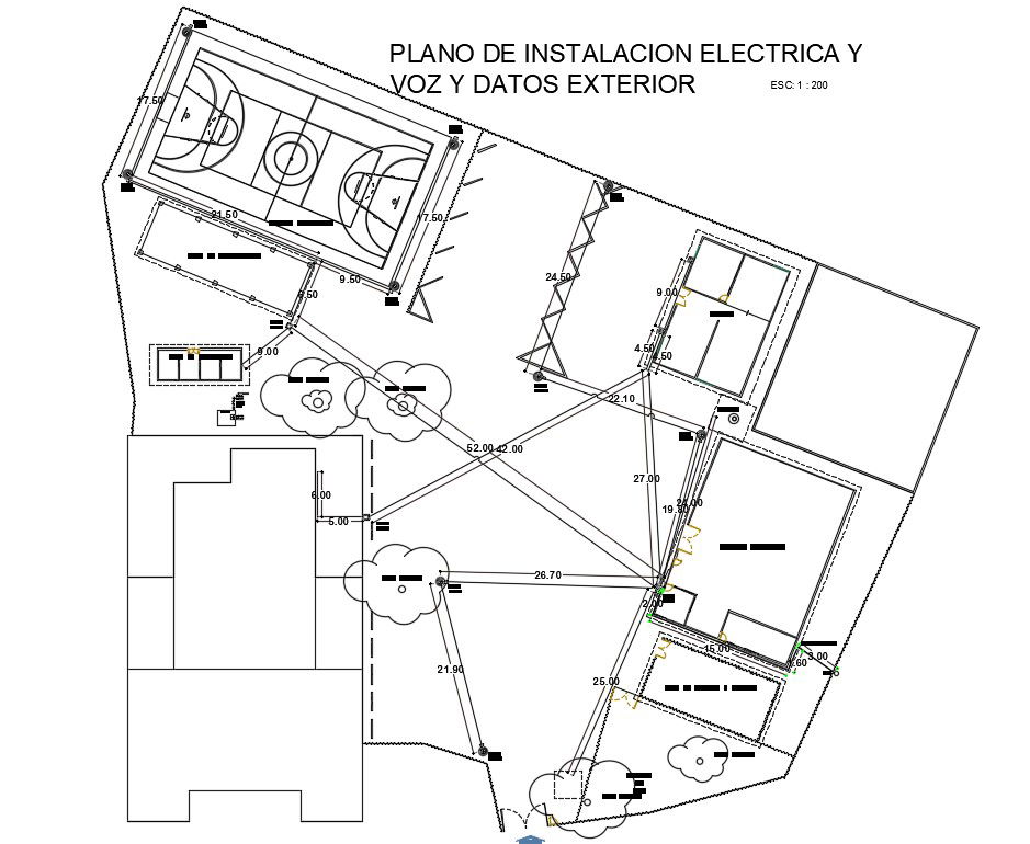 Electrical and voice installation of basketball court plan is given in this Autocad drawing file.Download now.