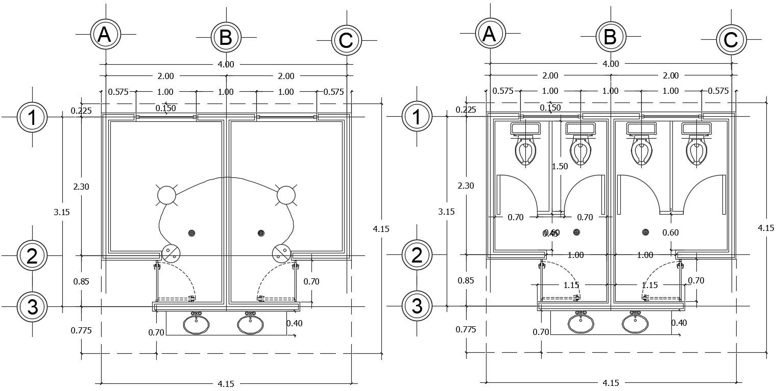 4x4m bathroom plan is given in this Autocad drawing file. Download the Autocad model.