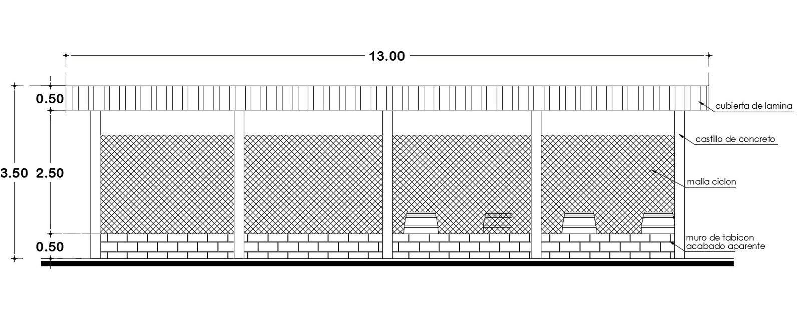 4m height of the restaurant wall detail is given in this Autocad drawing file. Length of the structure is 11m. Sheet roof, concrete castle, cyclone mesh, partition wall apparent finish and other details are given in this model. For more details download the Autocad file. Thank you for downloading the Autocad drawing file and other CAD program files from our Cadbull website.