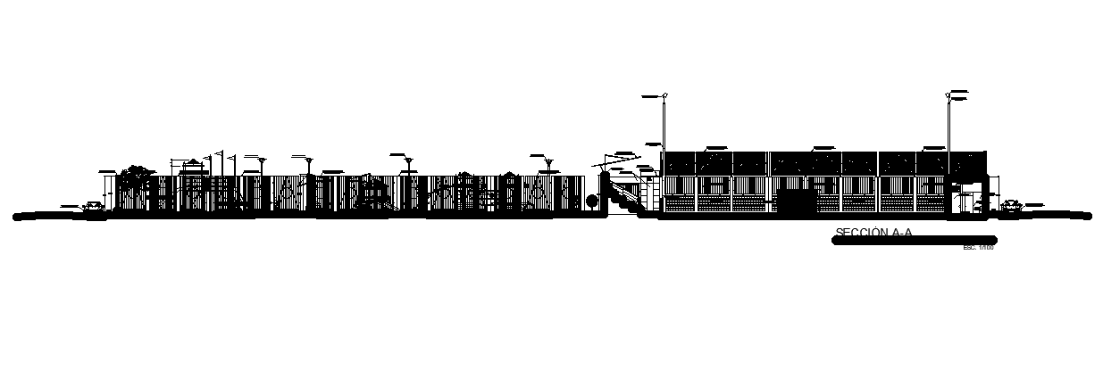 2d Sectional Elevation Basketball Ground Drawing Free Download DWG File