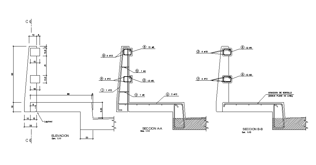 An elevation view of the column structures are given in this Autocad drawing file. Download now.