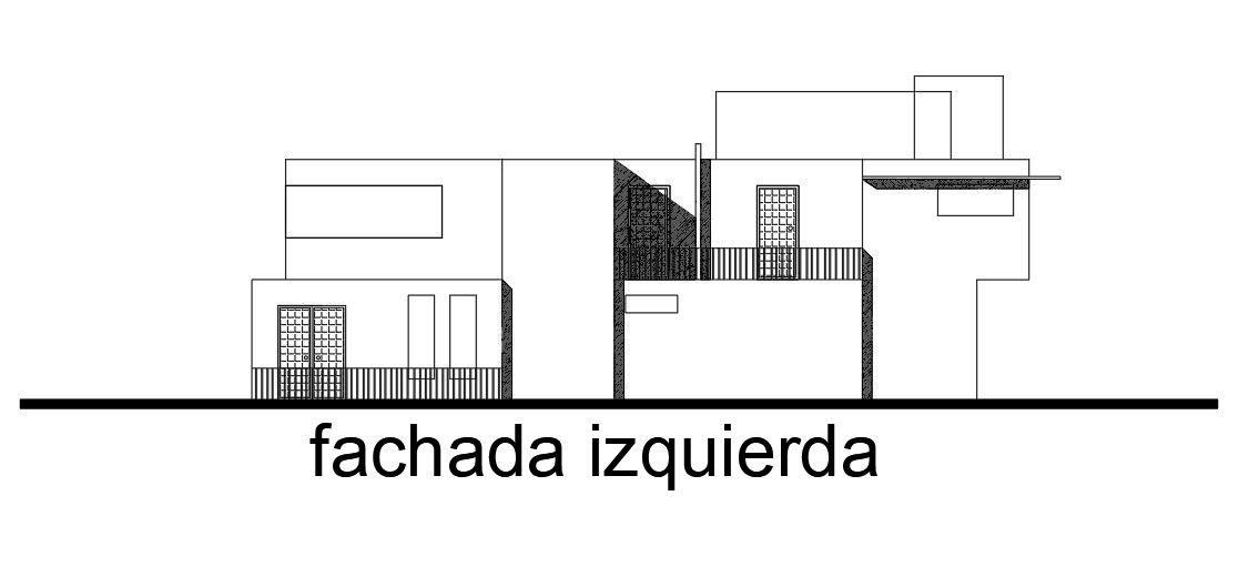 Left side elevation view of 19x14m villa house building is given in this Autocad drawing file. Download now.