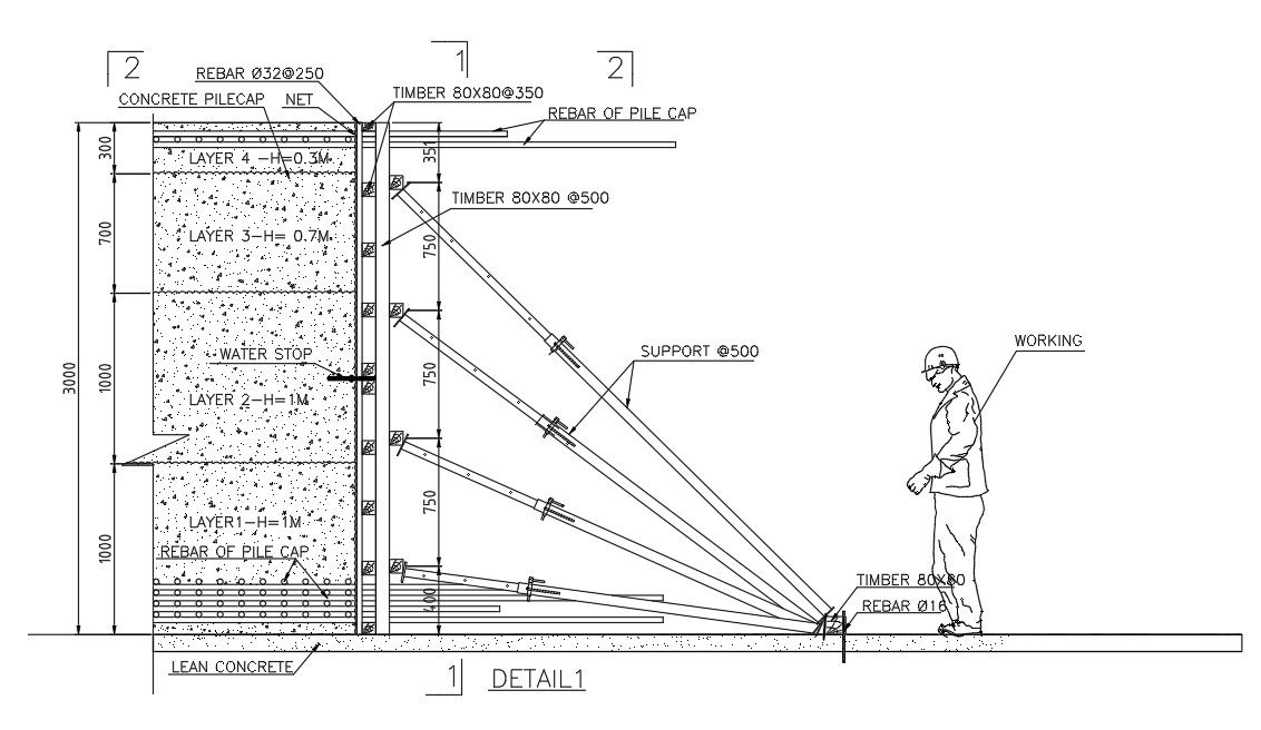 Foundation section view is given in this Autocad drawing file. This is given for 19x14m villa house building. Water stop, lean concrete, concrete layer, support bar, timber, rebar and other details are mentioned in this model. For more details download the Autocad file. Thank you for downloading the Autocad drawing file and other CAD program files from our Cadbull website.