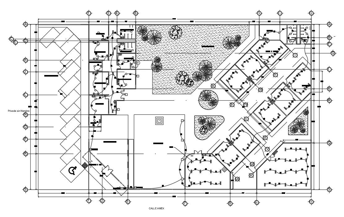 Wall layout of 70x42m college plan is given in this Autocad drawing file.Download the Autocad model.