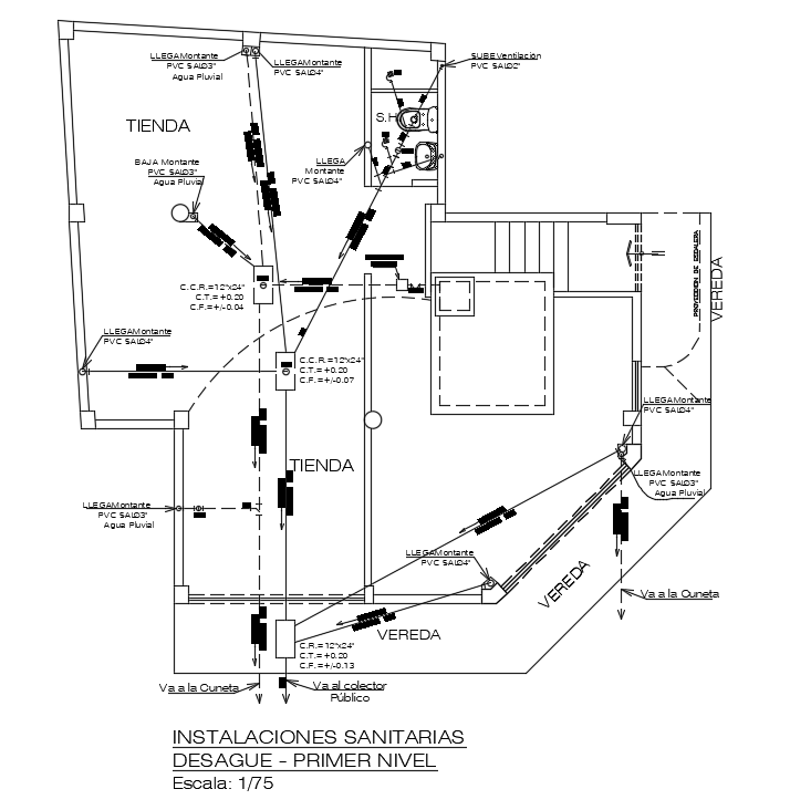 Sanitation drainage detail of 10x10m commercial cum staying room first floor plan is given in this Autocad drawing file. Download the Autocad model.