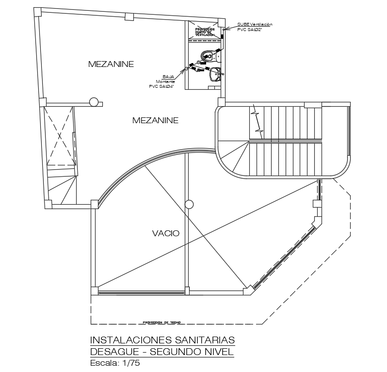 Sanitation drainage detail of 10x10m commercial cum staying room second floor plan is given in this Autocad drawing file. Download the Autocad model.