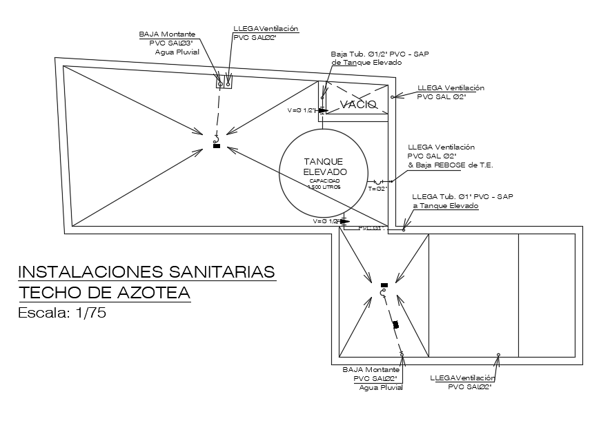 Sanitation layout of 10x10m commercial cum staying room roof plan is given in this Autocad drawing file. This is G+1 commercial building. Laundry, tank, empty, roof and water closet are available. For more details download the Autocad file. Thank you for downloading the Autocad file and other CAD program files from our website.
