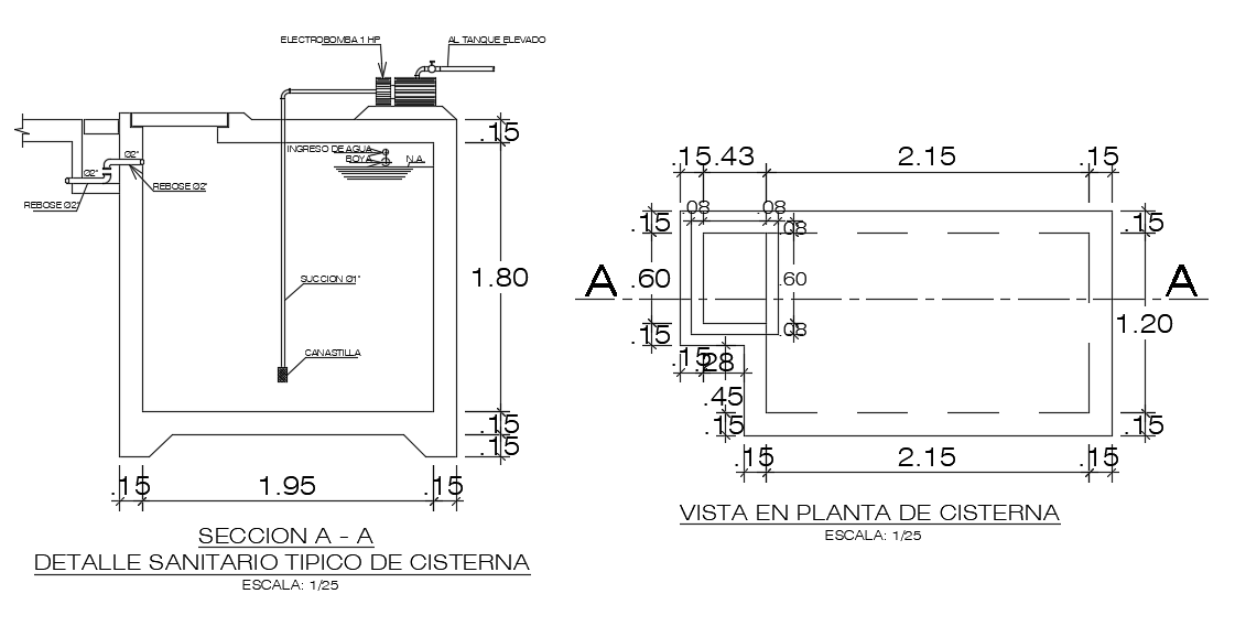 10x10m commercial plan of section view of typical cistern sanitary detail is given in this Autoccad drawing file. The length and breadth of the plan is 2.15m and 1.20m respectively. For more details download the Autocad file. Thank you for downloading the Autocad file and other CAD program files from our website.