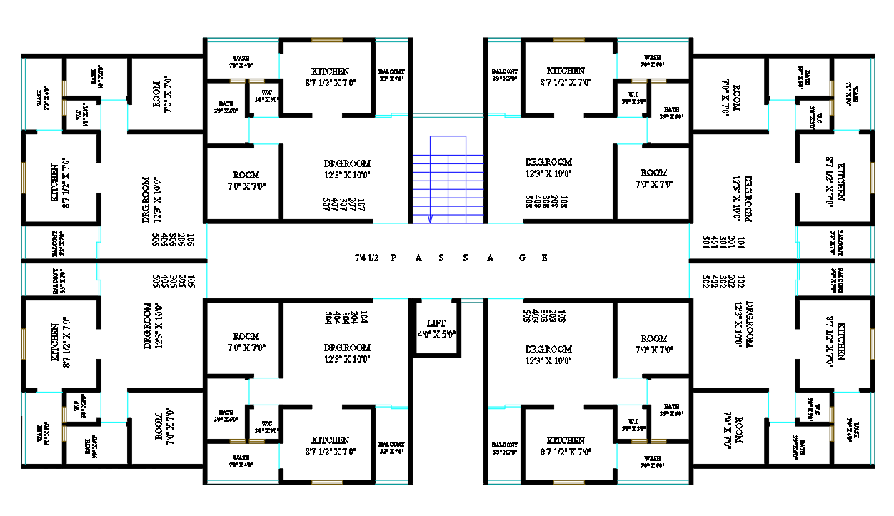 the architecture apartment cluster layout plan AutoCAD drawing which includes 1 bedrooms, kitchen, drawing room, balcony and balcony. also ahs 7'wide passage, lift and staircase detail. there is total 8 house unit on the floor with all measurement detail dwg file. Thank you for downloading the Autocad file and other CAD program files from our website.