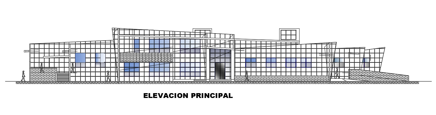 Front elevation view of 240x58m architecture college building is given in this Autocad drawing file.Download the Autocad model.
