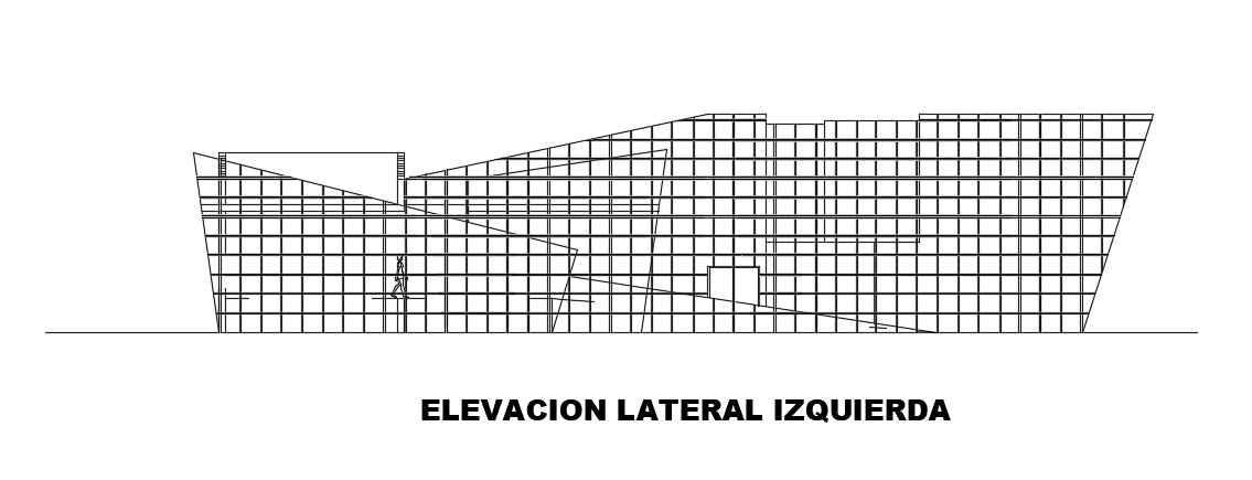Left side elevation view of 240x58m architecture college building is given in this Autocad drawing file. Download the Autocad model.