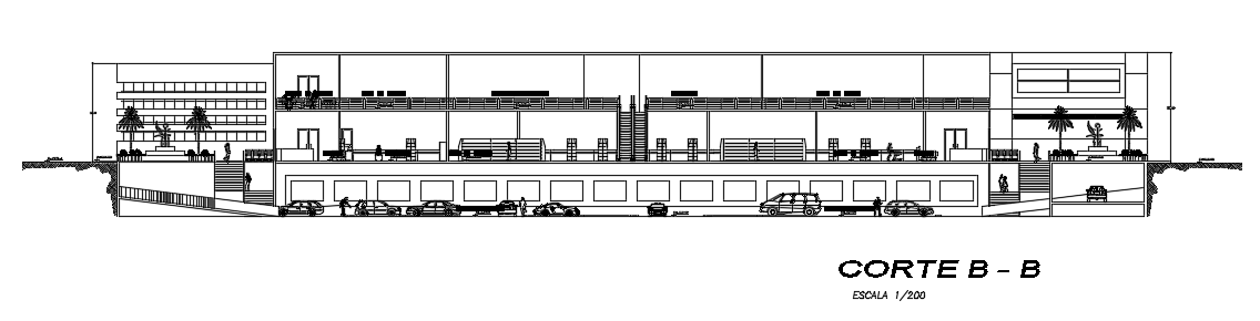Back side interior section view of 60x20m commercial building is given in this Autocad drawing file. This is G+2 commercial building. Total height of the building is 14.80m. Appliances, games area, food court, shoes, ladies clothing, sales area, cashier, parking, liquor store and other details are available. For more details download the Autocad file. Thank you for downloading the Autocad file and other CAD program files from our website.