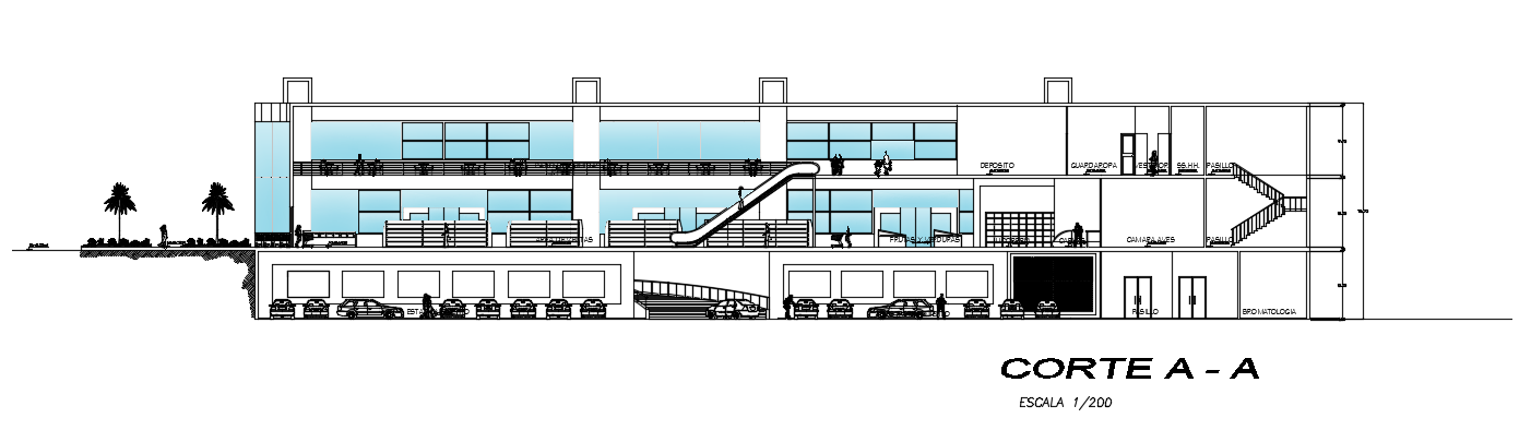 Front section view of 60x20m commercial building is given in this Autocad drawing file. This is G+2 commercial building. Total height of the building is 14.80m. Appliances, games area, food court, shoes, ladies clothing, sales area, cashier, parking, liquor store and other details are available. For more details download the Autocad file. Thank you for downloading the Autocad file and other CAD program files from our website.