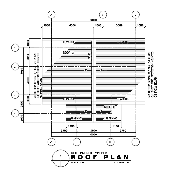 Roof plan of 9x9m hospital plan is given in this Autocad drawing file. Download the Autocad model.