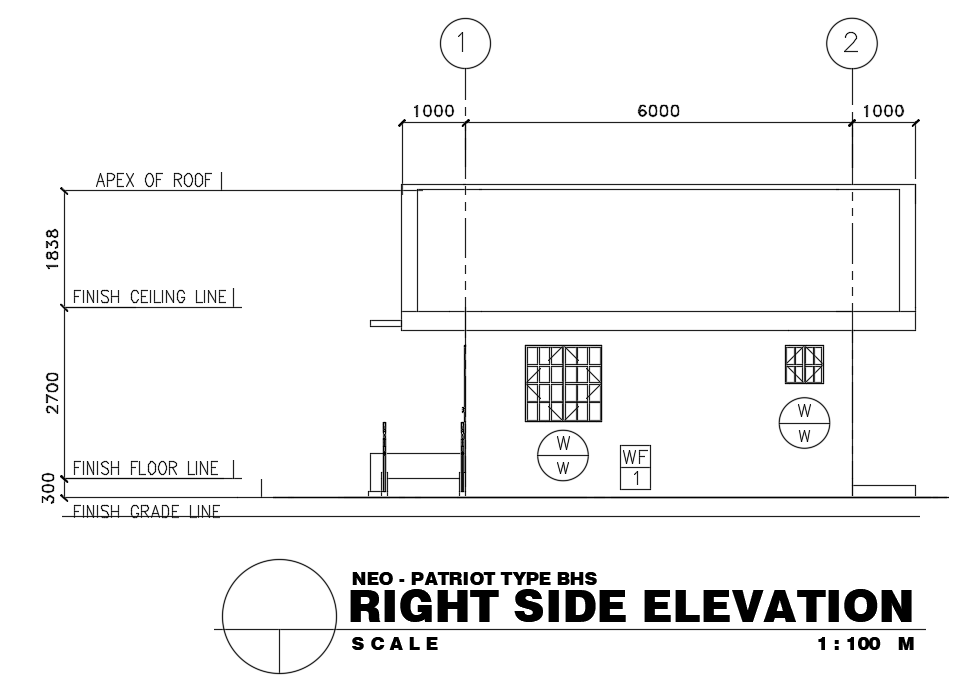 Right side elevation view of 9x9m hospital building is given in this Autocad drawing file. This is single story hospital building. Treatment room, pantry, receiving area, midwife’s office, green area, ramp and porch is available in this plan. For more details download the Autocad file. Thank you for downloading the Autocad file and other CAD program files from our website.