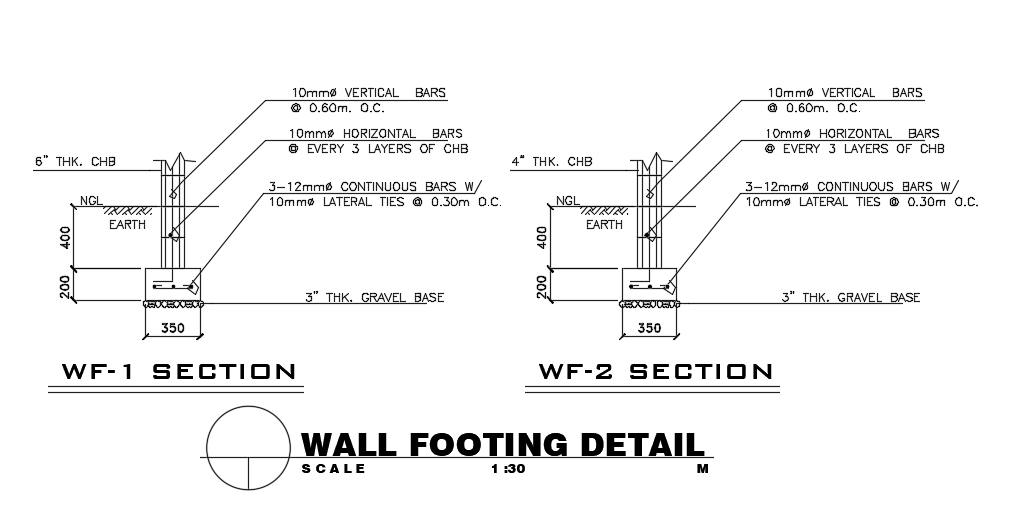 9x9m hospital plan of wall footing detail is given in this Autocad drawing file. Section view of the wall is given in this drawing model. Reinforcement details are given in this model. For more details download the Autocad file. Thank you for downloading the Autocad file and other CAD program files from our website.