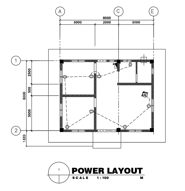 Power layout of 9x9m hospital building is given in this Autocad drawing file.Download the Autocad model.