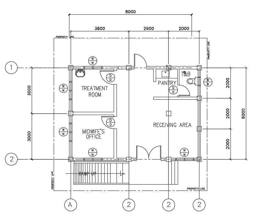 Column marking of 9x9m hospital plan is given in this Autocad drawing file. This is single story hospital building. Treatment room, pantry, receiving area, midwife’s office, green area, ramp and porch is available in this plan. For more details download the Autocad file. Thank you for downloading the Autocad file and other CAD program files from our website.