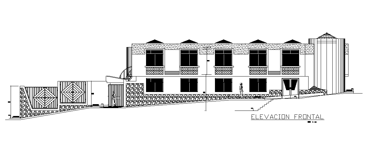 The architecture club house building side elevation design that shows spa room, change room, services staff area, lift, staircase, store room, dining area and sports game basket ball play ground with railing wall design dwg file. Thanks for downloading the file and another CAD program from the cadbull.com website.
