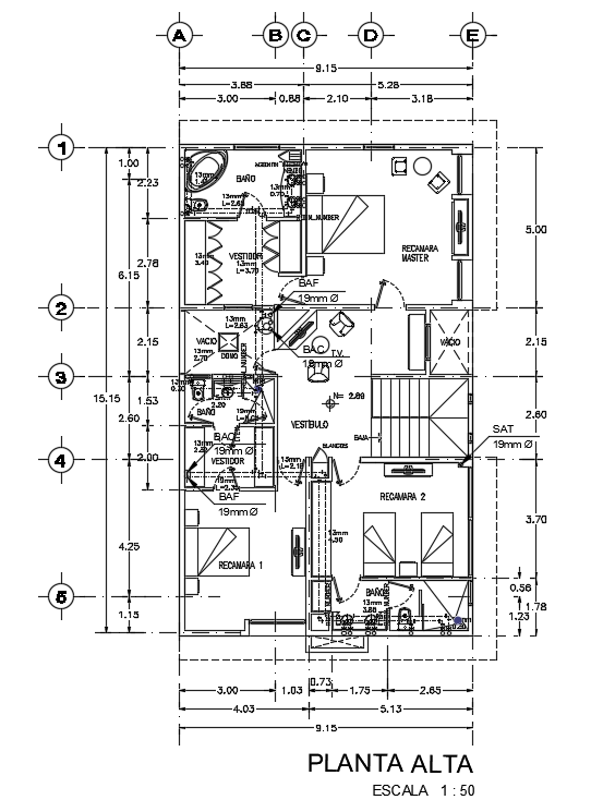 Measurement detail of 9x14m first floor house plan is given in this Autocad drawing file. Download the Autocad model.