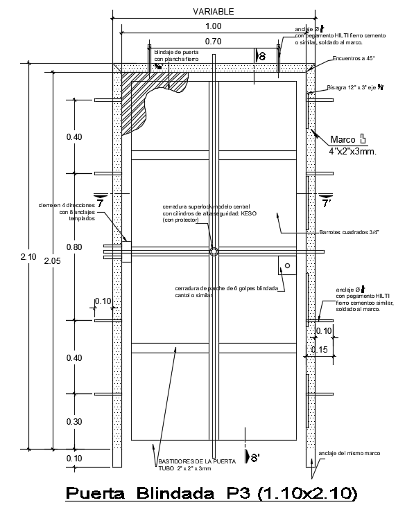 1.1x2.1m armored door plan is given in this Autocad drawing file.Download the Autocad model.