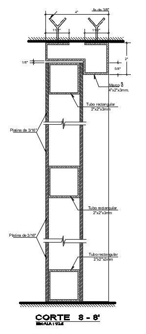 Transverse section view of 1.1x2.1m armored door plan is given in this Autocad drawing file.Download the Autocad model.