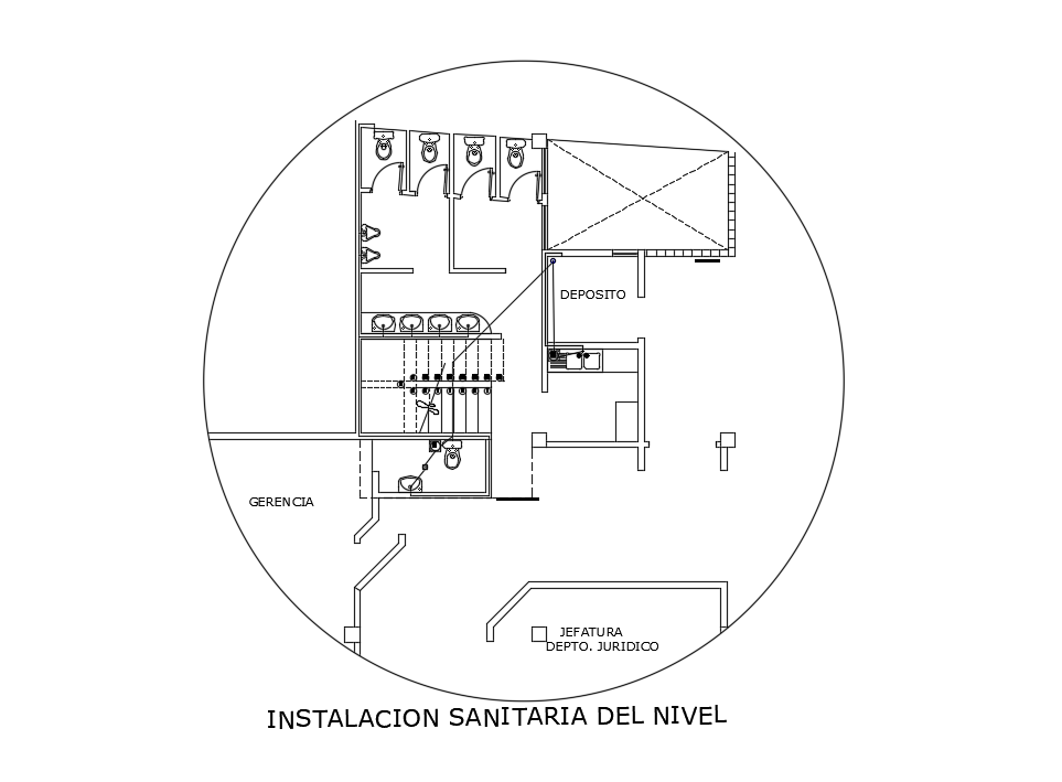 Sanitary installation of 24x22m ground floor inspection office plan is given in this Autocad drawing file. Download now.