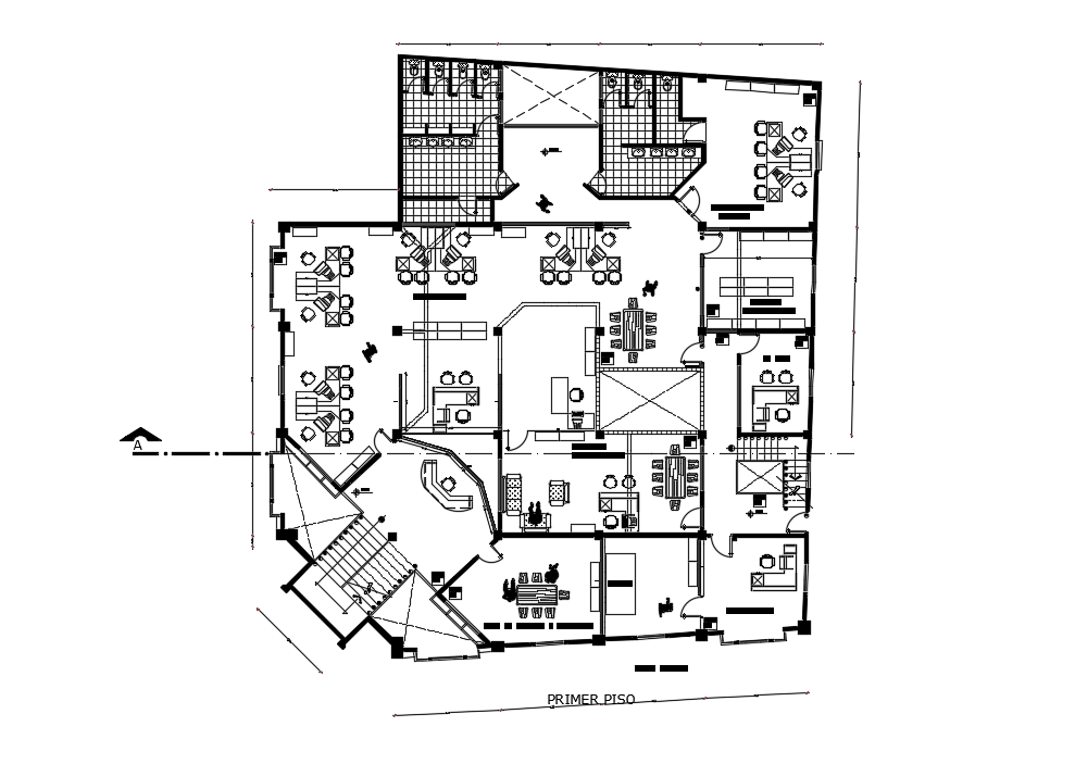 24x22m first floor inspection office plan is given in this Autocad drawing file.Download now.