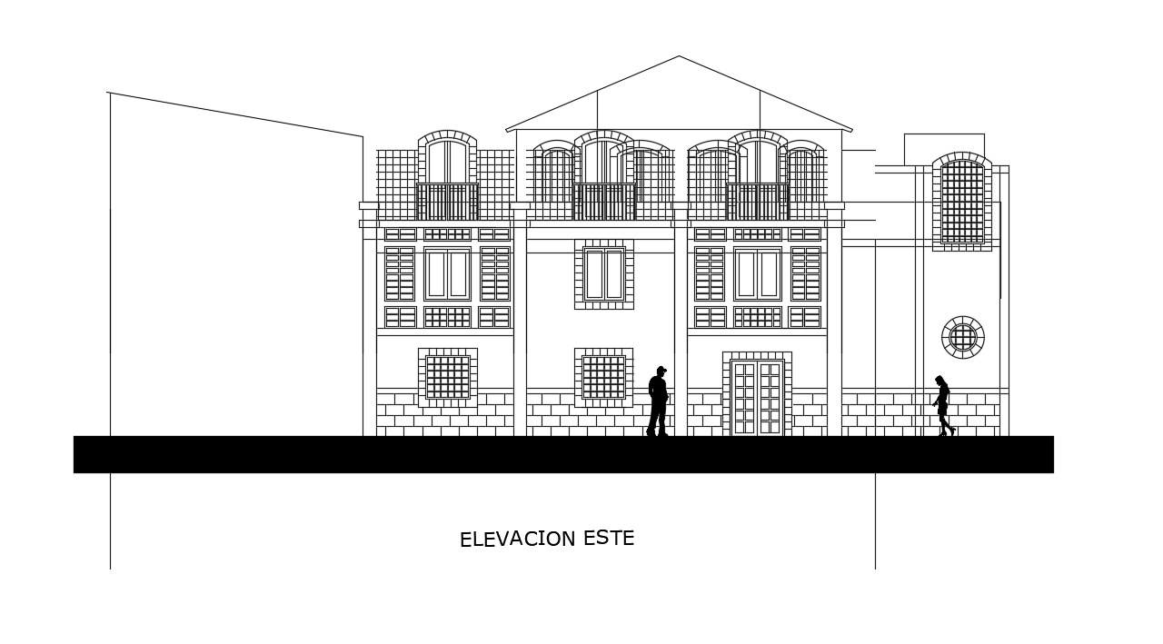 East side elevation view o f24x22m first floor inspection office building is given in this Autocad drawing file. Download now.