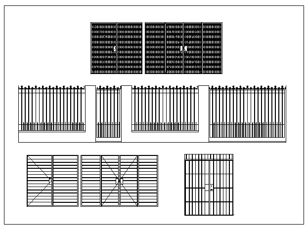 This is a Various styles of wrought iron security gates design drawing in this auto cad file with detail drawing.