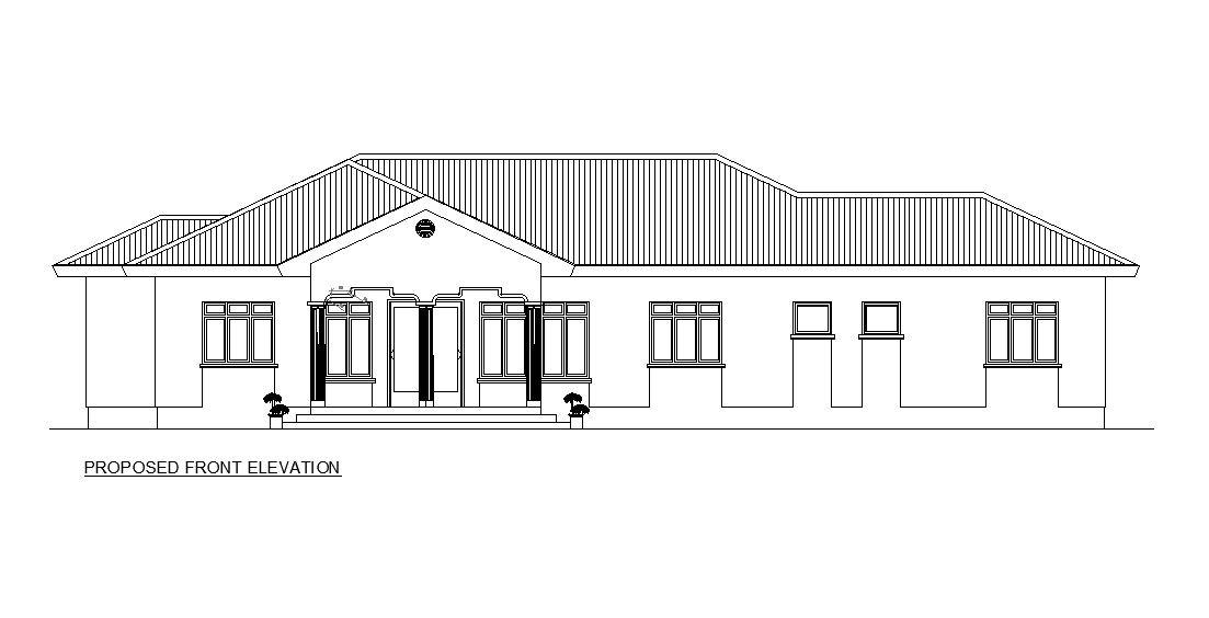 The hotel building front elevation design that shows single storey floor level model design, door window marking, truss span roof and the total 70X50 feet length and breadth plot size detail dwg file. Thank you for downloading the AutoCAD file and other CAD program files from our website.
