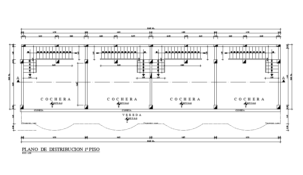 The hotel bedrooms distributional floor plan AutoCAD drawing that shows 20X5 meter plot size, 4 bedrooms, verandah, staircase and projection slab with all dimension detail dwg file. also has column layout plan and wall detail. Thank you for downloading the Autocad file and other CAD program files from our website.