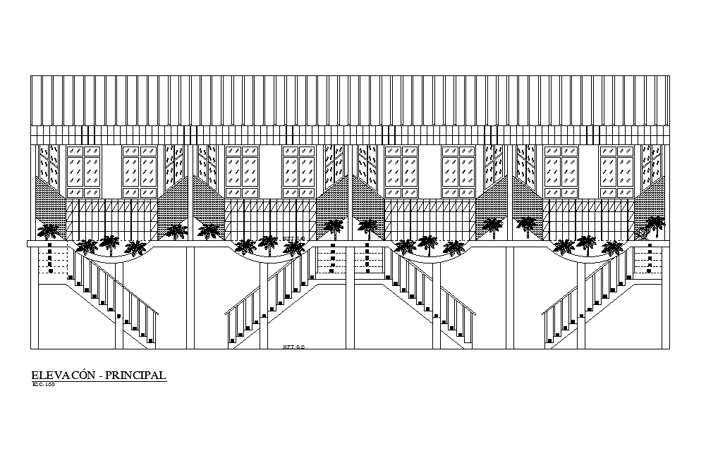 20mX7m plot size for hotel bedrooms building front elevation design that shows out side staircase, gallery, door window marking, truss span roof and total 4 number of bedrooms elevation detail dwg file. Thank you for downloading the Autocad file and other CAD program files from our website.