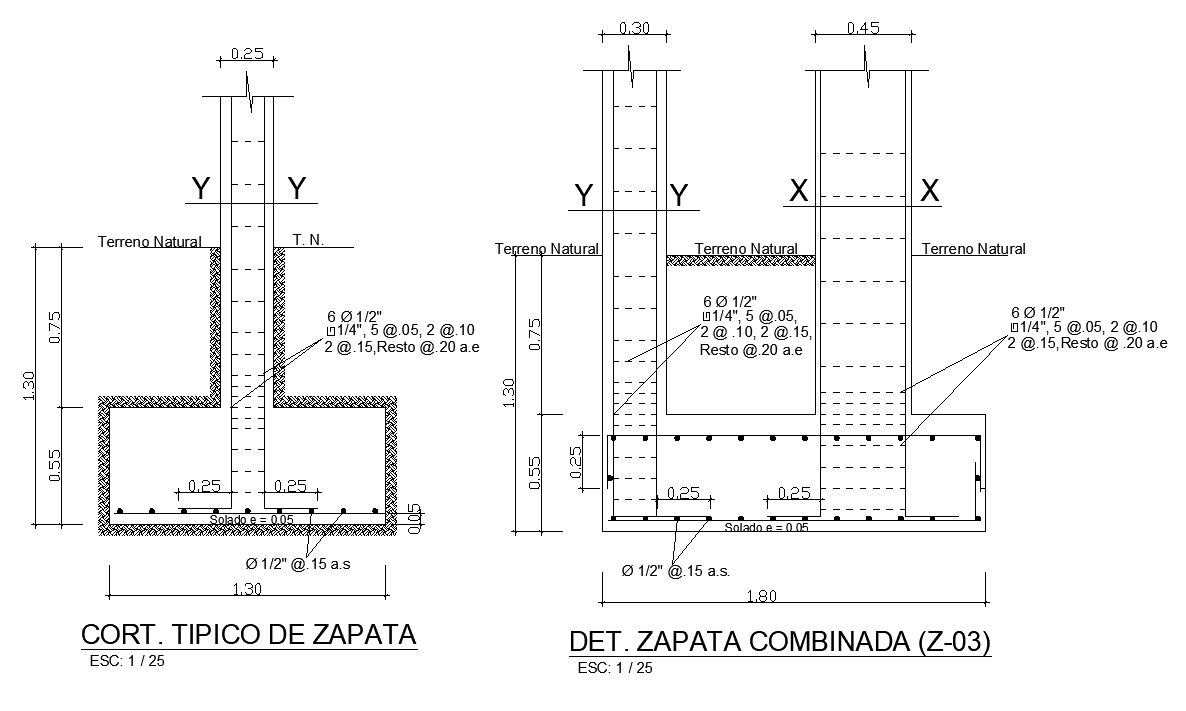 Combine And Single Column Footing Section CAD Drawing Download DWG File