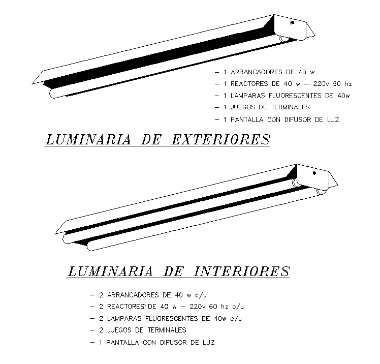 The interior lighting isometric elevation design which consist 40w starters, 40w fluorescent lamps, terminal kits, screen with light diffuser, and description detail in dwg file. Thank you for downloading the 2D Autocad files and other CAD program files from our website.