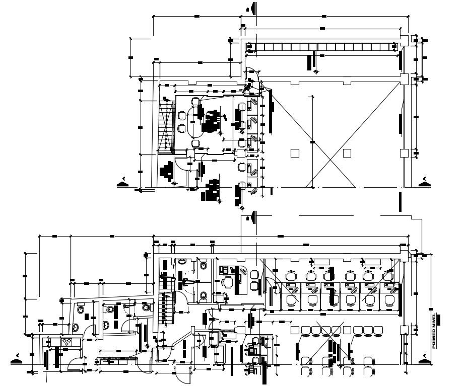 22x7m office ground floor plan is given in this Autocad drawing file. Download the Aotocad model.