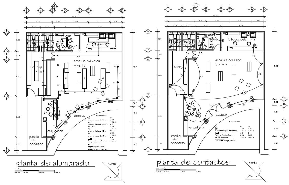 An electrical layout of 12x15m sales office plan is given in this Autocad drawing file. Download now.